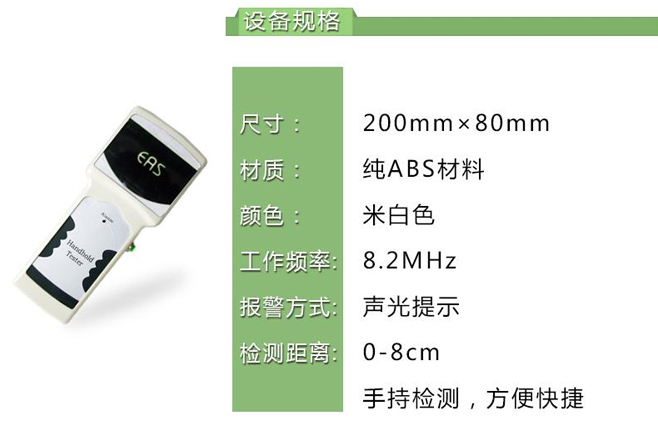 用于檢測聲磁58k硬標(biāo)簽DR軟標(biāo)簽等,能檢測各種商品防盜軟,硬標(biāo)簽和防盜綁帶。適用于超市,箱包店,玩具店,醫(yī)藥店,連鎖店,服裝店的查看。在不能搜身的前提下,禮貌地運用手持防盜檢測儀,近距離查看客戶,可防止發(fā)生意外及官司膠葛,有利于維護(hù)貴公司的形象和信譽。