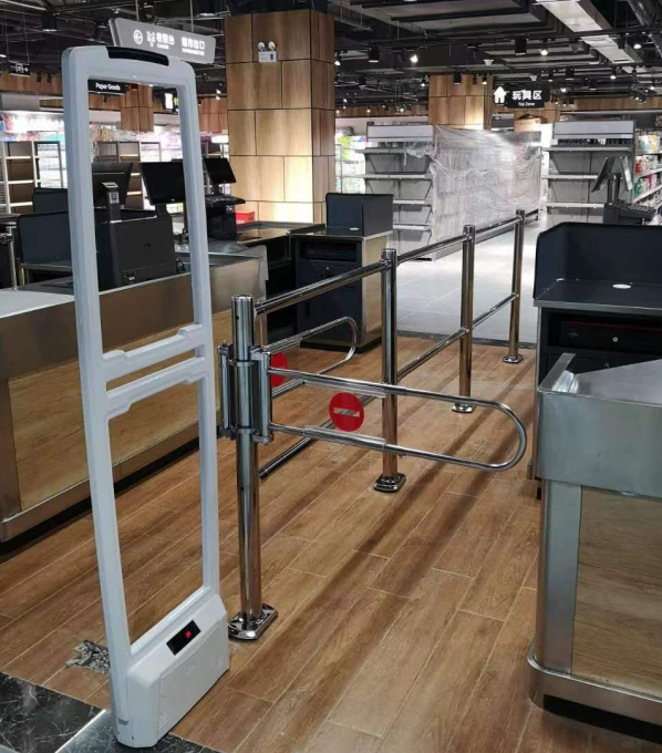 收銀臺(tái)擋門器:加裝在收銀通道護(hù)欄使用(需要配套卡套使用),也可用螺絲固定于收銀臺(tái)上。