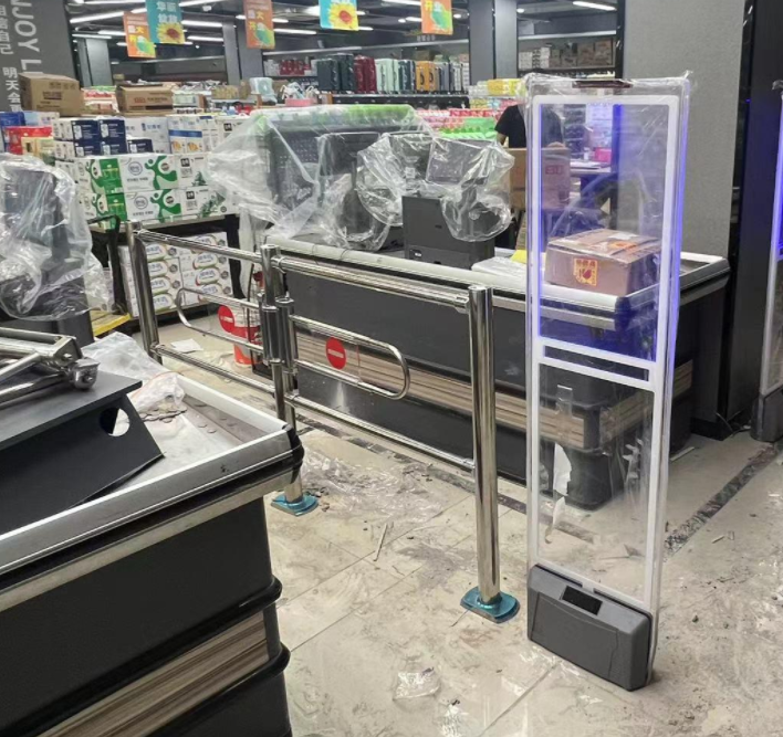 收銀臺(tái)擋門器:加裝在收銀通道護(hù)欄使用(需要配套卡套使用),也可用螺絲固定于收銀臺(tái)上。
